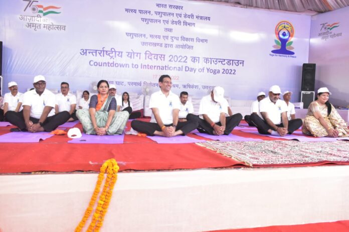 केंद्रीय राज्य मंत्री पशुपालन, डेयरी एवं मत्स्य पालन भरत सरकार मंत्री संजीव बालियान परमार्थ निकेतन में अंतर्राष्ट्रीय योग दिवस के पूर्वाभ्यास कार्यक्रम में मुख्य अतिथि के रूप में प्रतिभाग किया।