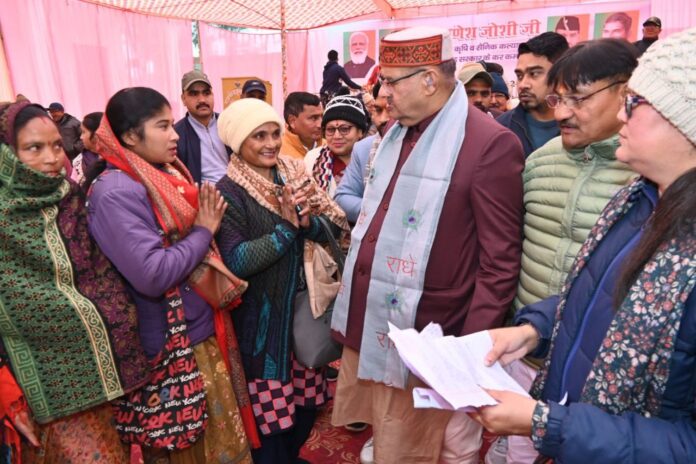 सरकार में कृषि मंत्री और जनपद के प्रभारी मंत्री गणेश जोशी ने जनता को सम्बोधित करते हुए कहा कि प्रभारी मंत्री होने के कारण मेरा प्रयास रहता है कि सबके हितों के लिए कार्य करूँ। उन्होंने कहा कि मोदी सरकार समाज के हर वर्ग के उत्थान के लिए कार्य कर रही है। आज देश के 80 करोड़ लोगों को फ्री में राशन देने का कार्य कर रही है। उन्होंने कहा कि महिलाओं की चिंता करते हुए 10 करोड़ से अधिक लोगों को उज्जवला गैस योजना के अंतर्गत गैस-चुल्हा वितरण करने का कार्य देश के प्रधानमंत्री नरेन्द्र मोदी ने किया। 10 करोड़ से अधिक इज्जत घर (शौचालय) बनाने का कार्य मोदी सरकार के द्वारा किया गया है। उन्होंने कहा कि इसी क्रम में प्रधानमंत्री आवास योजना के माध्यम से देश में निर्धन/जरूरतमंद लोगों को उनका अपना घर देने का कार्य देश के प्रधानमंत्री नरेन्द्र मोदी के द्वारा किया जा रहा है। उन्होंने कहा कि हमारी सरकार चाहे वह दिल्ली की हो या प्रदेश की दोनों जनहित के लिए कार्य कर रही हैं। उन्होंने कहा कि हमारी सरकार का लक्ष्य है कि 2025 तक प्रदेश में एक लाख बहनों को लखपति दीदी योजना के माध्यम से लखपति बनाना हैं। मंत्री ने कहा पुष्कर सिंह धामी सरकार जिन योजनाओं का शिलान्यास करती है उनका लोकार्पण भी करती है। उन्होंने कहा प्रदेश धामी सरकार सरली करण समाधान और निस्तारण के मूल मंत्र के साथ कार्य कर रही है। इस अवसर पर उन्होंने बाजपुर के लोगों की समस्या भी सुनी और संबंधित अधिकारियों को उसके निराकरण के निर्देश दिए।