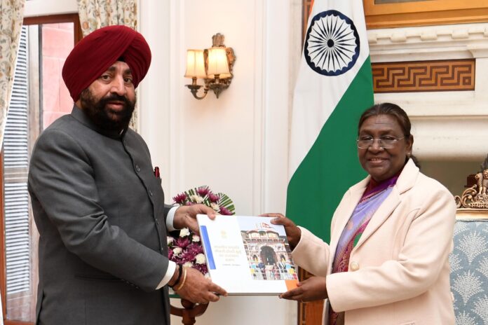 राज्यपाल लेफ्टिनेंट जनरल गुरमीत सिंह (से नि) ने गुरुवार को नई दिल्ली में माननीय राष्ट्रपति श्रीमती द्रौपदी मुर्मु से शिष्टाचार भेंट की