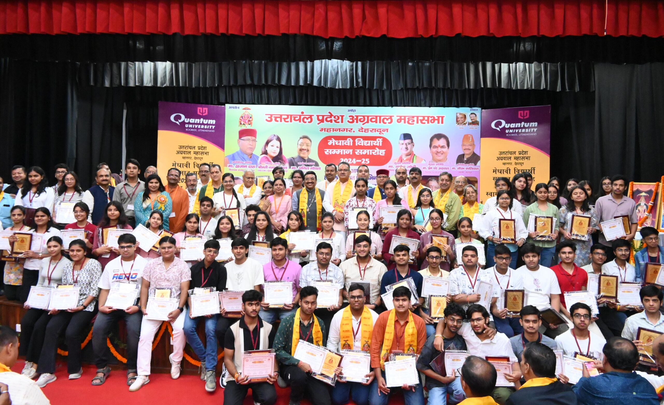 कार्यक्रम का शुभारंभ कैबिनेट मंत्री गणेश जोशी ने दीप प्रज्वलन कर किया। इस अवसर पर उन्होंने 10वीं और 12वीं कक्षा में उत्कृष्ट प्रदर्शन करने वाले मेधावी छात्र-छात्राओं को सम्मानित किया। सभागार की गैलरी में उत्तरांचल प्रदेश अग्रवाल महासभा द्वारा गतवर्षों में आयोजित कार्यक्रमो जो कि समाज को जागृत, संगठित एवं जनहित से जुडे कार्यक्रमो की फोटो प्रर्दशनी भी लगायी गयी जिसमें महाराजा अग्रसैन जयंन्ति समारोह, मेघावी विधार्थीगण सम्मान समारोह, होली मिलन, चिकित्सा कैम्प एवं महालक्ष्मी प्रकोष्ठ द्वारा आयोजित तीज उत्सव, श्रीकृष्ठ भगवान जन्मोत्सव प्रमुख रूप से दर्शायी गयी। कार्यक्रम में अतिथियों, अति विशिष्ट अतिथियों तथा संस्था के पदाधिकारियों ने दीप प्रज्जवलन कर महाराजा अग्रसैन जी के चित्र पर मार्त्यापण किया। इस कार्यक्रम में अतिथियों द्वारा 90 विधार्थीयों का सम्मानित किया गया। जिसमे कक्षा 12 के 54 बच्चे एवं कक्षा 10 के 36 बच्चों को प्रशस्ति पत्र एवं शील्ड से सम्मानित किया गया।
