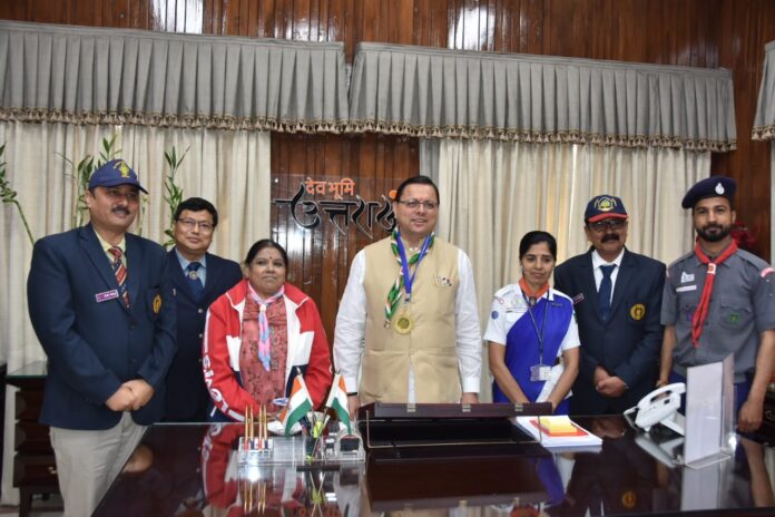 मुख्यमंत्री पुष्कर सिंह धामी से सोमवार को मुख्यमंत्री कैम्प कार्यालय में भारत स्काउट एवं गाइड की स्थापना दिवस के अवसर पर भारत स्काउट एवं गाइड के प्रतिनिधि दल ने भेंट की।