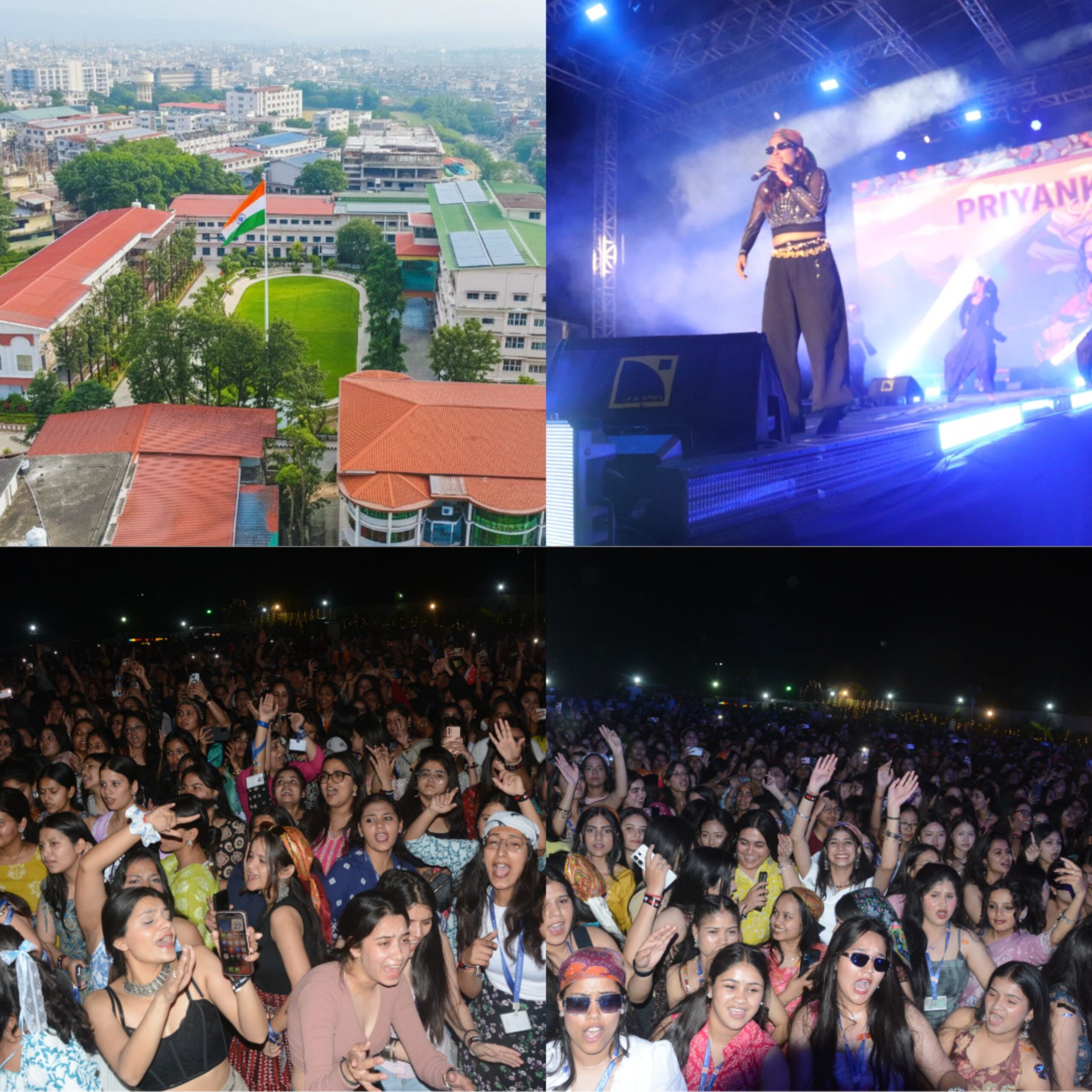 श्री गुरु राम राय विश्वविद्यालय (एसजीआरआरयू) में 27 व 28 अप्रैल को दो दिवसीय वार्षिक सांस्कृतिक महोत्सव जैनिथ-2026 का आयोजन किया जा रहा है। जैनिथ-2026 के पहले दिन सोमवार को श्री गुरु राम राय हेलीपैड ग्राउंड, पथरी बाग में कलाकारों ने जोरदार प्रस्तुतियों से समा बांध दिया। कार्यक्रम का पहला दिन उत्तराखण्ड की लोक गायिका प्रियंका मेहर और डीजे निक की जोरदार प्रस्तुतियों के नाम रहा। मंगलवार केा बालीवुड गायक विशाल मिश्रा की जोरदार प्रस्तुति होगी। श्री गुरु राम राय विश्वविद्यालय में आयोजित कार्यक्रम के दौरान आशा भोसले को भावभीनी श्रद्धांजलि अर्पित की गई। श्री गुरु राम राय विश्वविद्यालय के माननीय प्रेसिडेंट श्रीमहंत देवेंद्र दास जी महाराज ने इस सांस्कृतिक उत्सव के आयोजन के लिए विश्वविद्यालय प्रशासन एवम् छात्र-छात्राओं को शुभकामनाएं प्रेषित कीं। उन्होंने कहा कि आशा भोसले जी के गीतों ने पीढ़ियों को जोड़ा और संगीत को नई पहचान दी। भारतीय संगीत जगत में उनका योगदान अमूल्य और अविस्मरणीय है।