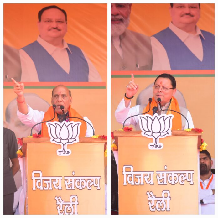 केंद्रीय रक्षा मंत्री राजनाथ सिंह एवं मुख्यमंत्री धामी ने काशीपुर में आयोजित विजय संकल्प रैली को किया संबोधित