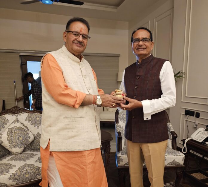 केंद्रीय कृषि मंत्री शिवराज सिंह चौहान से मुलाकात करते कृषि मंत्री गणेश जोशी
