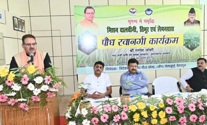 प्रदेश के कृषि एवं कृषक कल्याण मंत्री गणेश जोशी ने आज देहरादून से मिशन दालचीनी एवं मिशन तिमूर की घोषणा के अंतर्गत सगन्ध पौधा केन्द्र (कैप), सेलाकुई द्वारा प्रदेश के विभिन्न जनपदों के लिए पहले चरण में लगभग 03 लाख पौधों को फ्लैग ऑफ किया।