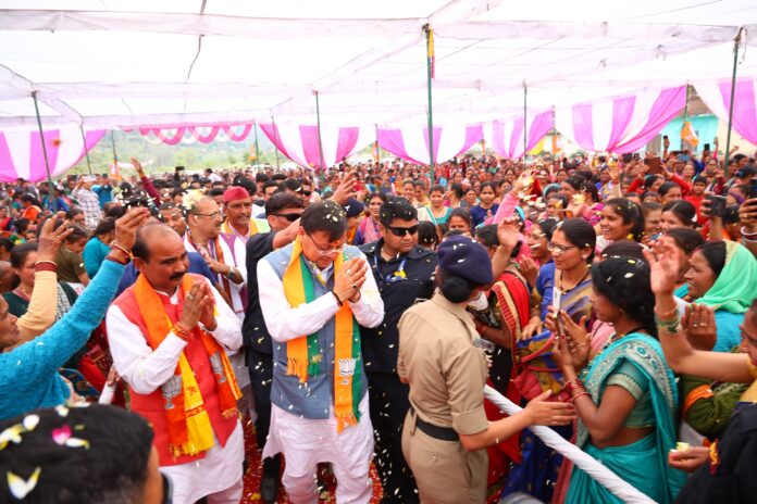 मुख्यमंत्री धामी ने आर्य इंटर कॉलेज, देघाट, अल्मोड़ा में अल्मोड़ा लोकसभा सीट से भाजपा प्रत्याशी अजय टम्टा के पक्ष में आयोजित जनसभा में किया प्रतिभाग