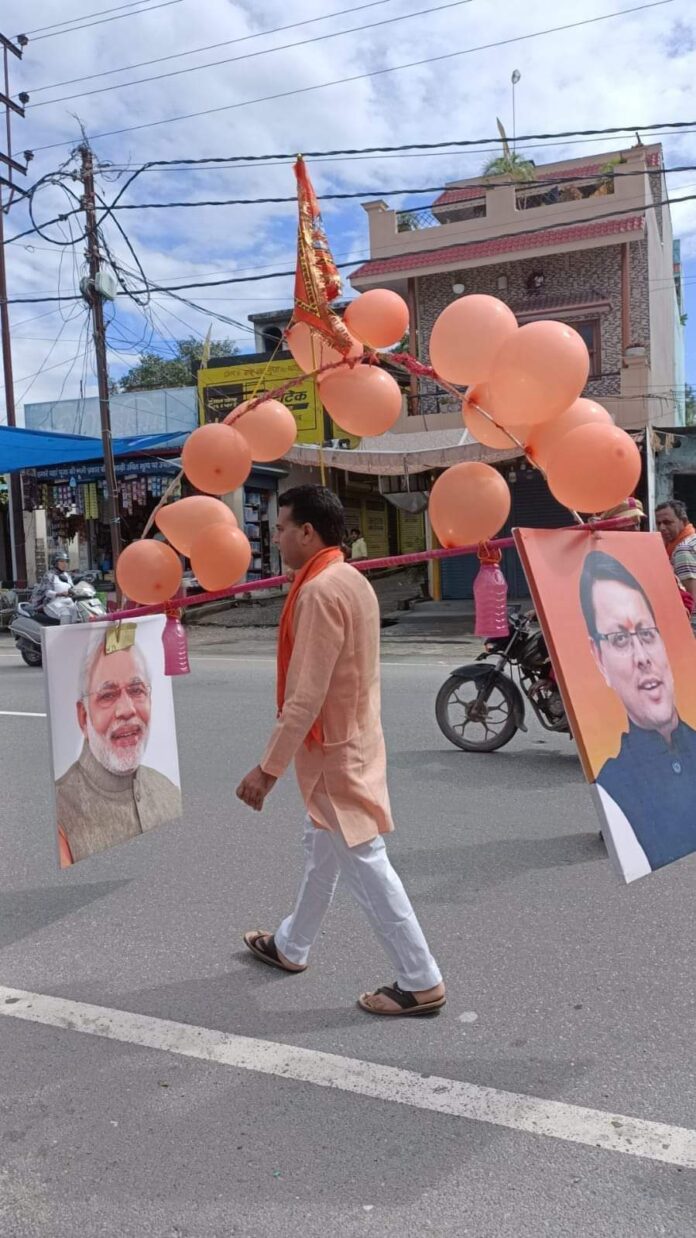 मोदी और धामी की तस्वीर लगी भाजपा प्रदेश प्रवक्ता नवीन ठाकुर की कावड़ रही आकर्षण का केंद्र,