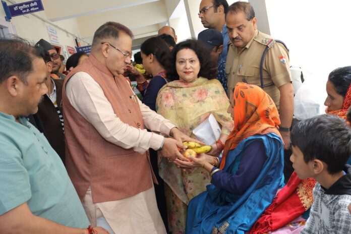 केंद्रीय गृह मंत्री अमित शाह के जन्म दिवस के अवसर मसूरी उप जिला चिकित्सालय में मरीजों को फल वितरित करते कैबिनेट मंत्री गणेश जोशी