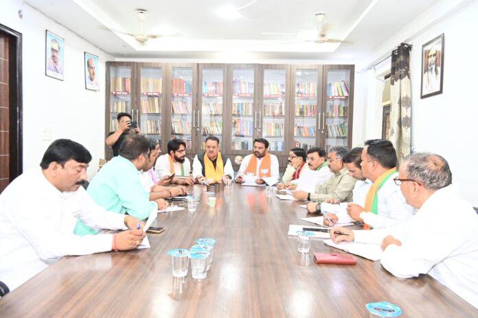 काबीना मंत्री गणेश जोशी ने आज दिल्ली के यमुना विहार स्थित उत्तर पूर्वी दिल्ली लोकसभा सीट से भाजपा सांसद प्रत्याशी मनोज तिवारी के लोकसभा चुनाव कार्यालय में चुनाव प्रचार के दृष्टिगत आगामी प्रस्तावित कार्यक्रमों के संबंध में विधानसभा प्रभारी और विधानसभा संयोजकों के साथ बैठक की गई।