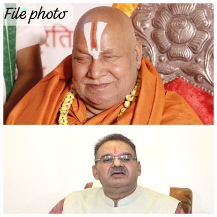कैबिनेट मंत्री गणेश जोशी ने भेंट के दौरान जगतगुरु रामभद्राचार्य का आशिर्वाद भी प्राप्त किया