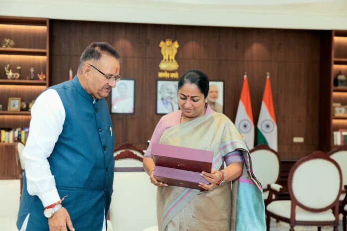 नई दिल्ली में मुख्यमंत्री रेखा गुप्ता से की शिष्टाचार भेंट करते कैबिनेट मंत्री गणेश जोशी, देवभूमि उत्तराखण्ड आने का दिया निमंत्रण