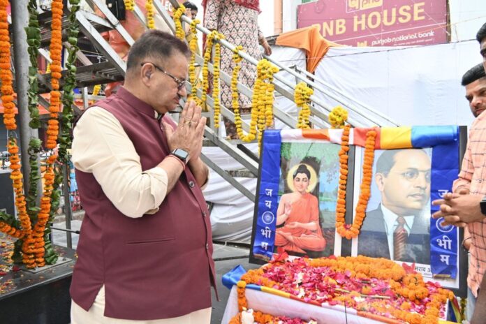 कैबिनेट मंत्री गणेश जोशी ने कहा प्रधानमंत्री नरेंद्र मोदी के नेतृत्व में भाजपा सरकार बाबा साहेब भीमराव अंबेडकर जी के आदर्शों को आत्मसात कर वंचितों के उत्थान हेतु निरंतर कार्य कर रही है