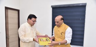 मुख्यमंत्री पुष्कर ने केंद्रीय रक्षा मंत्री राजनाथ सिंह से की शिष्टाचार...