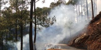 धू-धूकर जल रहा सतेराखाल के पास चीड़ का जंगल