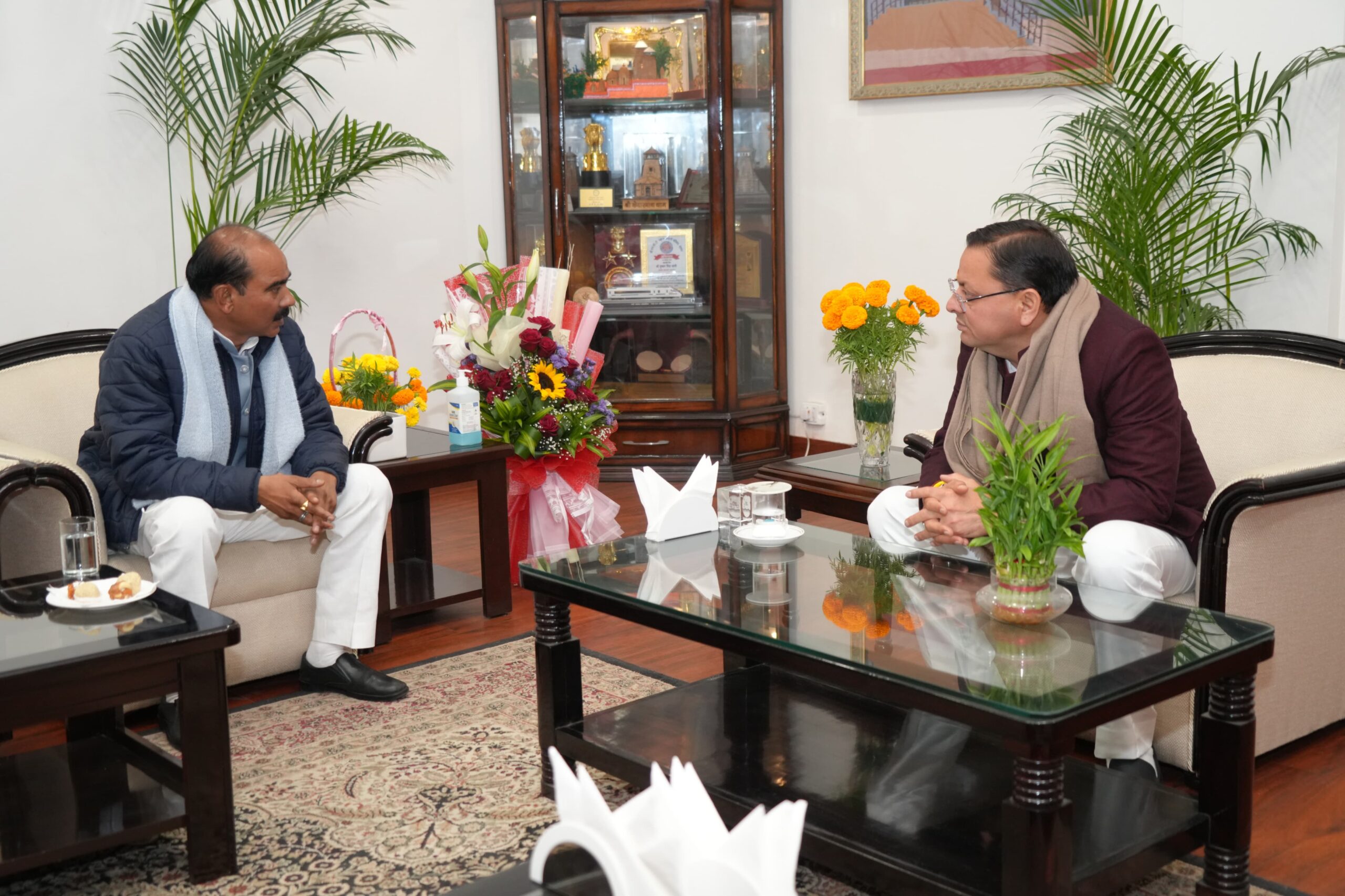 मुख्यमंत्री श्री पुष्कर सिंह धामी से आज मुख्यमंत्री आवास में सड़क परिवहन एवं राजमार्ग मंत्रालय, भारत सरकार में राज्य मंत्री श्री अजय टम्टा ने मुलाक़ात की।