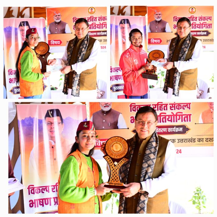 ’’विकल्प रहित संकल्प’’ भाषण प्रतियोगिता के विजेताओं को मुख्यमंत्री धामी ने सम्मानित किया