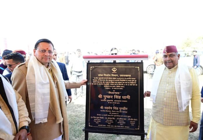 मुख्यमंत्री धामी ने सहसपुर में मीठीबेरी–परवल–चांदनी चौक व परवल–विज्ञान धाम झाझरा मार्ग के चौड़ीकरण के द्वितीय चरण (किमी 1–10) का 1203.40 लाख की लागत से शिलान्यास किया