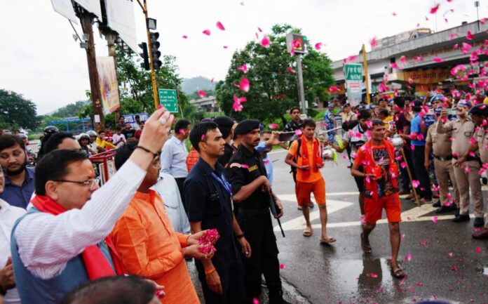 मुख्यमंत्री धामी ने कावड़ियों पर की पुष्प वर्षा पढ़े पूरी रिपोर्ट