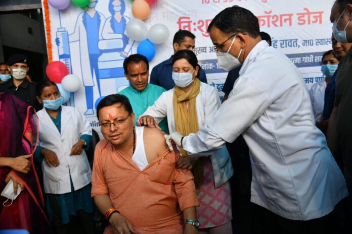 मुख्यमंत्री धामी ने कोविड टीकाकरण अमृत महोत्सव का स्वयं टीका लगाकर शुरूआत की, 18 से 59 आयुवर्ग के सभी लाभार्थियों हेतु निशुल्क प्रिकाशन डोज की शुरूआत, सभी लाभार्थियों टीकाकरण में सहयोगी बने: मुख्यमंत्री