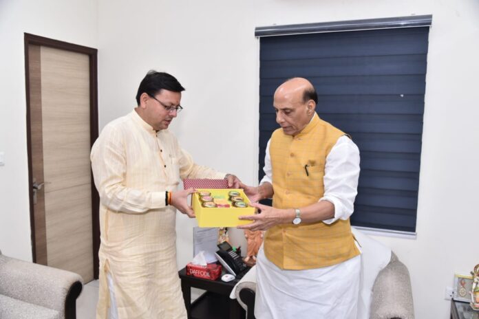 मुख्यमंत्री पुष्कर सिंह धामी ने गुरुवार को नई दिल्ली में केंद्रीय रक्षा मंत्री राजनाथ सिंह से शिष्टाचार भेंट की।