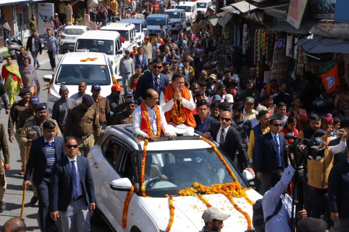 मुख्यमंत्री पुष्कर सिंह धामी और सांसद अजय टम्टा भी रैली में हुए शामिल, खुली जीप में बैठकर किया जनता का अभिवादन।