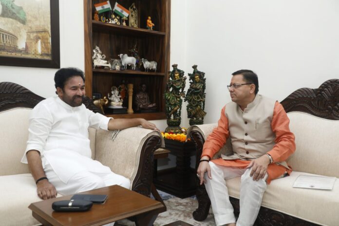 मुख्यमंत्री पुष्कर सिंह धामी ने नई दिल्ली में केन्द्रीय पर्यटन एवं संस्कृति मंत्री श्री जी. किशन रेड्डी से भेंट की। इस अवसर पर मुख्यमंत्री ने केन्द्रीय पर्यटन एवं संस्कृति मंत्री से मिनी प्रसाद योजना एवं ‘‘स्वदेश दर्शन 2.0’’ के अन्तर्गत विभिन्न प्रस्तावों की प्रशासनिक एवं वित्तीय स्वीकृति प्रदान करने का अनुरोध किया। मुख्यमंत्री ने मिनी प्रसाद योजना के अन्तर्गत प्रथम चरण में 07 प्रस्तावों एवं ‘‘स्वदेश दर्शन 2.0’’ के अन्तर्गत जनपद पिथौरागढ़ के आदि कैलाश, गुंजी, दत्तु तथा मुनस्यारी, जनपद चम्पावत के अन्तर्गत चम्पावत तथा चुखा, जनपद उत्तरकाशी के जादौंग, जनपद पौड़ी गढ़वाल में कण्वआश्रम की प्रशासनिक एवं वित्तीय स्वीकृति प्रदान करने का अनुरोध किया।