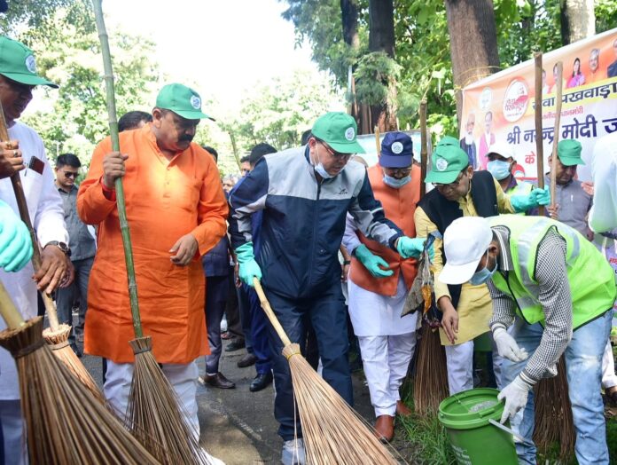 मुख्यमंत्री पुष्कर सिंह धामी ने रविवार को पंतनगर, उधम सिंह नगर स्थित जी.बी पंत यूनिवर्सिटी परिसर में सेवा पखवाड़े के अंतर्गत स्वच्छता कार्यक्रम में प्रतिभाग किया, इस दौरान उन्होंने स्वयं सड़क पर झाड़ू लगाकर स्वच्छता का संदेश दिया।