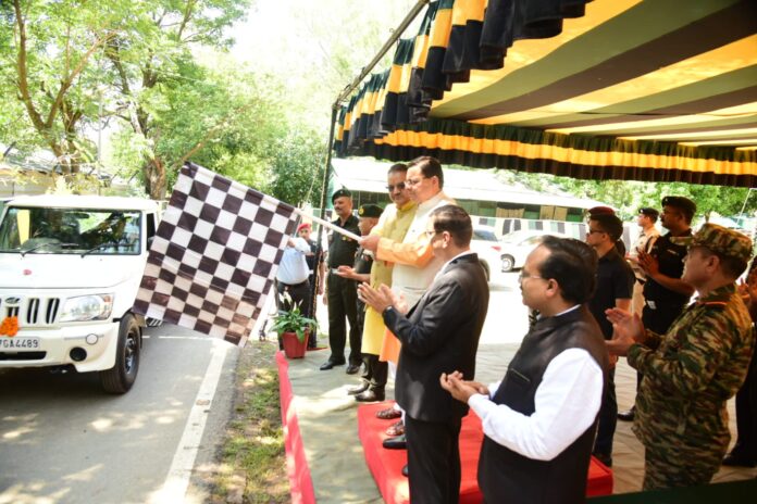 मुख्यमंत्री पुष्कर सिंह धामी ने गुरुवार को गढ़ी कैंट, देहरादून में उत्तराखंड बागवानी विभाग के माध्यम से इको टास्क फोर्स को उपलब्ध कराए गये बोलेरो वाहनों एवं मोटरसाइकिलो का फ्लैग ऑफ किया। इस दौरान 02 बोलेरो पिकअप और 10 मोटरसाइकिलें ईको टास्क फोर्स को सौंपी गई।