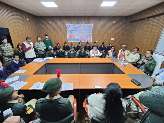 मुख्यमंत्री पुष्कर सिंह धामी ने विकास भवन, पौड़ी में एन०सी०सी० कैडेट्स व अन्य प्रतिभाशाली स्कूली छात्र-छात्राओं के साथ “क्यों होता है गाँव से पलायन“ विषय पर संवाद कार्यक्रम में प्रतिभाग किया। इस अवसर पर उन्होंने मेधावी छात्र-छात्राओं को सम्मानित भी किया।