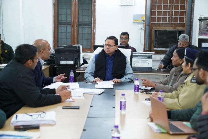 मुख्यमंत्री पुष्कर सिंह धामी ने शनिवार को जोशीमठ भू धंसाव क्षेत्र का स्थलीय निरीक्षण एवं पीडितो से मुलकात के बाद वापस देहरादून पहुंचने पर सचिवालय स्थित आपदा प्रबन्धन केन्द्र में शासन के उच्चाधिकारियों के साथ राहत एवं बचाव कार्यों की समीक्षा की।