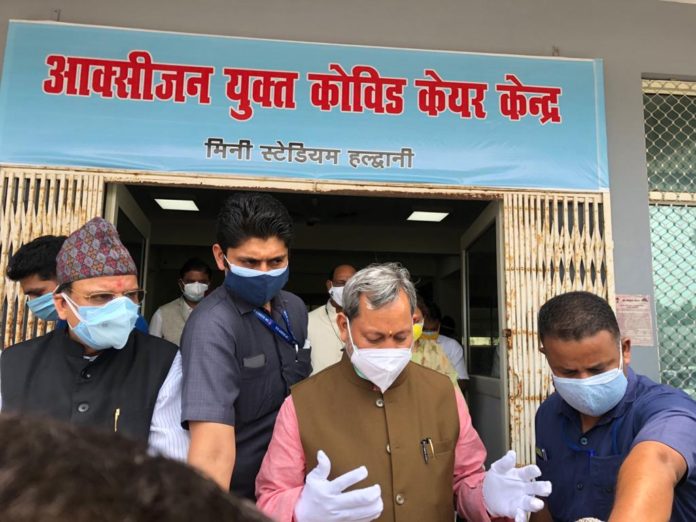 हल्द्वानी। मुख्यमंत्री श्री तीरथ सिंह रावत ने हल्द्वानी भ्रमण कार्यक्रम के दौरान कोविड की रोकथाम और इसके मरीजों के उपचार के लिए की गई व्यवस्थाओं का जायजा लिया। सबसे पहले एमबी पीजी कालेज में पहुंचकर उन्होंने कोविड टीकाकरण अभियान की शुरुआत की। मिनी स्टेडियम पहुंचकर वहां बनाए गए कोविड केयर सेंटर का निरीक्षण किया और फिर डा. सुशीला तिवारी राजकीय चिकित्सालय और उसके परिसर में डीआरडीओ द्वारा बनाए जा रहे 500 बेड के कोविड अस्पताल का भी निरीक्षण किया। इस दौरान उन्होंने कोरोना मरीजों के उपचार में जुटे स्वास्थ कर्मियों को प्रोत्साहन राशि दिए जाने पर सहमति जताई।
