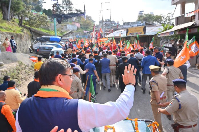 रानीखेत, अल्मोड़ा में आयोजित रोड शो में सम्मिलित होकर मुख्यमंत्री धामी ने जनता से भाजपा प्रत्याशी अजय टम्टा को भारी मतों से विजयी बनाने की अपील की