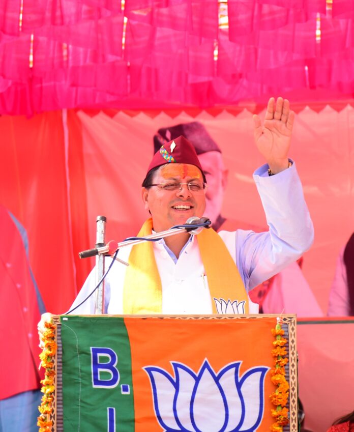 मुख्यमंत्री धामी ने मंगलवार को धूमाकोट बाजार, पौड़ी में गढ़वाल लोकसभा क्षेत्र से भाजपा प्रत्याशी अनिल बलूनी के पक्ष में आयोजित जनसभा को संबोधित किया
