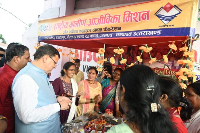 मुख्यमंत्री ने जनपद की स्वयं सहायता समूह की महिलाओं द्वारा हस्तनिर्मित पिरूल, ऐपण, सूत व अन्य स्थानीय उत्पादों से बनाई गई राखियों व अन्य निर्मित उत्पादों की सराहना की। उन्होंने कहा कि चंपावत को आदर्श जनपद बनाने हेतु जनपद में विभिन्न विकास कार्य किए जा रहे हैं और चंपावत आदर्श जनपद की ओर तेजी से आगे बढ़ रहा है। इसके साथ ही उत्तराखंड को अग्रणी जिला बनाने के लिए अनेकों विकास कार्य किए जा रहे हैं।