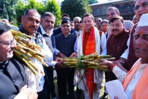 विधायक आदेश चौहान और पूर्व कैबिनेट मंत्री स्वामी यतीश्वरानंद के नेतृत्व में मिले गन्ना किसानों ने रायसी – बालावाली पुल तक तटबंद का निर्माण, इकबालपुर झबरेड़ा भगवानपुर क्षेत्र में शुगर मिल स्थापित किए जाने, इकबालपुर झबरेड़ा क्षेत्र में सिंचाई नहर निर्माण और डोईवाला मिल पर किसानों का बकाया भुगतान कराने की मांग उठाई। किसानों ने पेराई सत्र 2025-26 के लिए राज्य परामर्शित मूल्य घोषित करने की मांग उठाई। मुख्यमंत्री ने लॉन में बैठकर ही किसानों की मांगों को सुनते हुए, गन्ना मूल्य सहित अन्य सभी मांगों पर सकारात्मक निर्णय का आश्वासन दिया। मुख्यमंत्री ने किसानों के साथ जमीन पर बैठक गन्ना का स्वाद भी लिया। इस मौके पर विधायक प्रदीप बत्रा जिला पंचायत अध्यक्ष किरन चौधरी के साथ ही पूर्व विधायक संजय गुप्ता भी शामिल हुए।