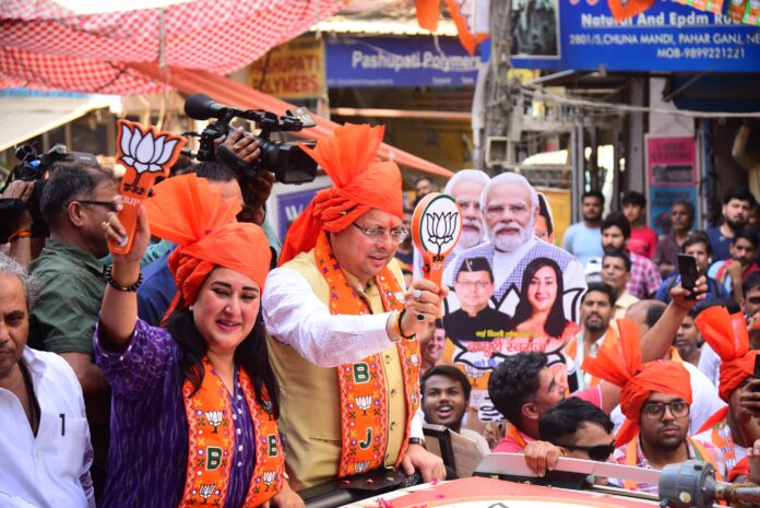 मुख्यमंत्री धामी ने पहाड़गंज, नई दिल्ली में भाजपा प्रत्याशी सुश्री बांसुरी स्वराज के पक्ष में आयोजित रोड शो में किया प्रतिभाग