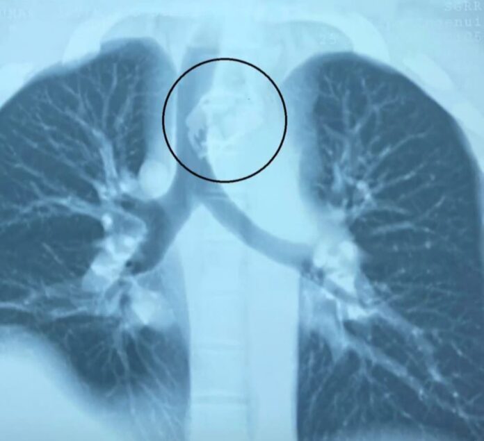श्री महंत इन्दिरेश अस्पताल के नाक कान गला रोग विभाग के डाॅक्टरों ने प्रारम्भिक जाॅचां मे पाया कि ब्लेड श्वास नली के निकट महत्वपूर्ण खून की सबसे बड़ी नस के काफी नजदीक अटकी हुई है।