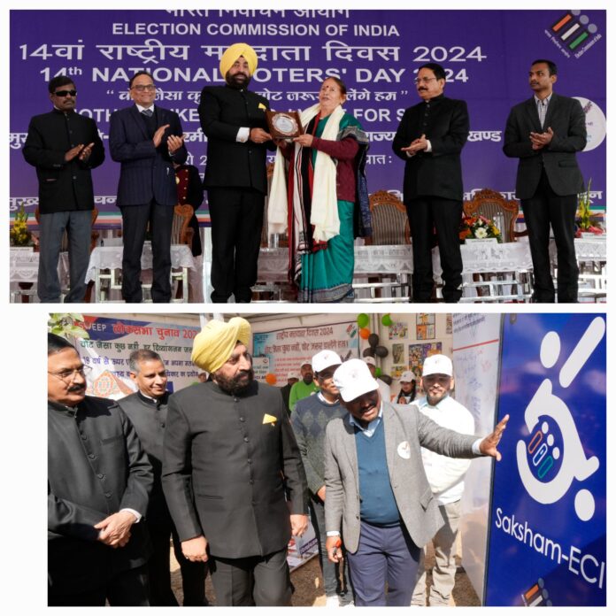 राज्यपाल लेफ्टिनेंट जनरल गुरमीत सिंह (से नि) ने देहरादून स्थित गांधी पार्क में उत्तराखण्ड राज्य निर्वाचन आयोग द्वारा आयोजित 14वें ‘राष्ट्रीय मतदाता दिवस 2024’ के अवसर पर बतौर मुख्य अतिथि प्रतिभाग किया इस दौरान उन्होंने कार्यक्रम का दीप प्रज्वलित करते हुए सभी उपस्थित लोगों को ‘राष्ट्रीय मतदाता दिवस’ की हार्दिक शुभकामनाएं दीं।