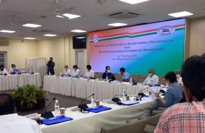 दिल्ली। कांग्रेस मुख्यालय में कांग्रेस महासचिवों, प्रदेशों के इंचार्ज और प्रदेश अध्यक्षों की महत्वपूर्ण बैठक चल रही है। इस बैठक में कांग्रेस की अध्यक्ष सोनिया गांधी, पार्टी के नेता राहुल गांधी, अजय माकन, रघु शर्मा, हरीश चौधरी, गोविंद सिंह डोटासरा और भंवर जितेंद्र मौजूद हैं।