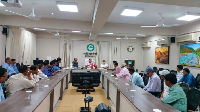 वन एवं पर्यावरण मंत्री सुबोध उनियाल ने उत्तराखण्ड वन विकास निगम के सभाकक्ष में उत्तराखण्ड वन विकास निगम के समस्त महाप्रबन्धक / क्षेत्रीय प्रबन्धक मुख्यालय के प्रबन्धक / अधिकारी तथा विडियों कॉन्फेन्स के माध्यम से उत्तराखण्ड वन विकास निगम के समस्त प्रभागीय प्रबन्धकों / क्षेत्रीय प्रबन्धकों की उत्तराखण्ड वन विकास निगम के कार्यकलाप एवं गतिविधियों की समीक्षा बैठक ली गयी। बैठक में विनोद कुमार, प्रमुख वन संरक्षक (HOFF), उत्तराखण्ड, डॉ० कपिल कुमार जोशी, प्रबन्ध निदेशक, उत्तराखण्ड वन विकास निगम, डॉ० विवेक पाण्डेय, महाप्रबन्धक (कु०मं०), हल्द्वानी, राहुल महाप्रबन्धक ( उत्पादन), देहरादून के अतिरिक्त प्रभागीय प्रबन्धक लौगिंग / खनन/विपणन व प्रभागीय लौगिंग प्रबन्धक मुख्यालय के साथ-साथ मुख्यालय के अनुभाग प्रभारियों द्वारा प्रतिभाग किया गया ।