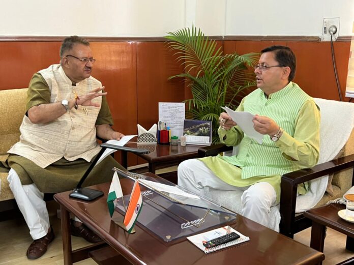 देहरादून, 24 अगस्त। कैबिनेट मंत्री गणेश जोशी ने आज मुख्यमंत्री पुष्कर सिंह धामी से मुलाकत की। इस दौरान कैबिनेट मंत्री गणेश जोशी ने मुख्यमंत्री पुष्कर सिंह धामी से विधानसभा क्षेत्र मसूरी के अन्तर्गत विकासखण्ड रायपुर के ग्राम पंचायत तिमलीमान सिंह सरखेत एवं छमरौली में तथा जनपद टिहरी के विकासखण्ड जौनपुर के अन्तर्गत ग्राम ग्वालीडाण्डा, तोलियाकाटल, सोन्दना, चिफल्टी एवं सीतापुर में दिनांक 20 अगस्त को आयी भीषण दैवीय आपदा के संबंध में मुख्यमंत्री से आपदा प्रभावितों की समस्याओं को रखा। और मंत्री जोशी ने आपदा में हुए नुकसान के बारे में विस्तार से मुख्यमंत्री को जानकारी दी। मंत्री जोशी ने मुख्यमंत्री से अनुरोध करते हुए कहा कि बादल फटने से आये सैलाब से काफी लोग प्रभावित हुये हैं जिसमें काफी जनहानि तो हुई है और कई लोग बेघर भी हो गये हैं। उन्होंने प्रभावित लोगों को विस्थापित किये जाने का मुख्यमंत्री से अनुरोध किया।