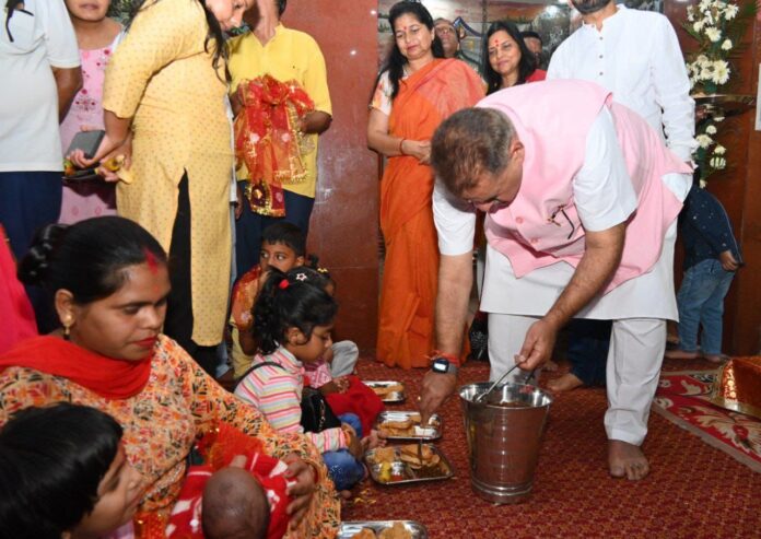 देहरादून, 11 अक्टूबर। कैबिनेट मंत्री गणेश जोशी ने आज शारदीय नवरात्रि के महानवमी के सुअवसर पर किशन नगर स्थित राधा कृष्ण मंदिर में मां सिद्धिदात्री की आराधना कर 151 नौदुर्गा स्वरूपा कन्याओं का सामूहिक रूप से विधि विधान पूर्वक कन्या पूजन किया।