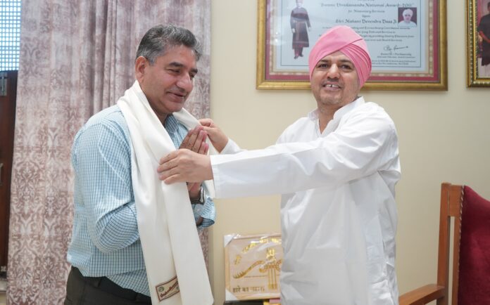 शनिवार को दीपक कुमार गैरोला- सचिव, संस्कृत शिक्षा, जनगणना एवं कार्यक्रम क्रियान्वयन, उत्तराखंड शासन ने श्री दरबार साहिब में माथा टेका। उन्होंने श्री दरबार साहिब के सज्जादे गद्दी नशीन एवम् श्री गुरु राम राय विश्वविद्यालय के माननीय प्रेसीडेंट श्रीमहंत देवेन्द्र दास जी महाराज के साथ भेंट की व उनका आशीर्वाद प्राप्त किया। दोनों के मध्य कई महत्पूर्ण विषयों पर सार्थक चर्चा हुई. साथ ही साथ उन्हें उत्तराखंड सरकार के कार्यक्रम क्रियान्वयन विभाग द्वारा प्रकाशित मेरी योजना पुस्तकें भेंट कर सरकार की योजनाओं को श्री दरबार साहिब एवं श्री गुरु राम राय विश्वविद्यालय के माध्यम से भी प्रचारित- प्रसारित करने का अनुरोध किया।