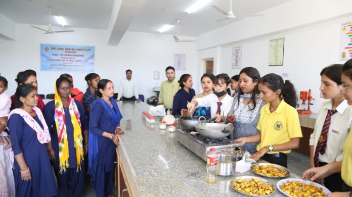 श्री गुरु राम राय विश्वविद्यालय में स्कूल ऑफ़ एग्रीकल्चरल साइंसेज के तत्वाधान में अंतर्राष्ट्रीय ग्रामीण महिला दिवस के अवसर पर एक दिवसीय व्यवहारिक प्रशिक्षण कार्यक्रम का आयोजन किया गया। इस कार्यक्रम में 20 ग्रामीण महिलाओं ने फल प्रसंस्करण एवं मशरुम उत्पादों का प्रशिक्षण प्राप्त किया। इस अवसर पर विश्वविद्यालय के कुलपति प्रोफेसर (डॉ.) यू. एस. रावत ने ग्रामीण क्षेत्रों के सामाजिक आर्थिक परिदृश्य में परिवर्तन हेतु ग्रामीण महिलाओं के सशक्तिकरण, कृषि उत्पादों का प्रसंस्करण एवं मूल्य संवर्धन की आवश्यकता पर बल दिया। माननीय कुलपति महोदय ने इन कार्यक्रमों के माध्यम से ग्रामीण क्षेत्रों के विकास में विश्वविद्यालय के योगदान की प्रतिबद्धता व्यक्त की।