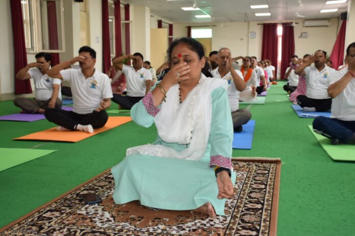 अंतरराष्ट्रीय योग दिवस के अवसर पर आज उत्तराखंड विधानसभा अध्यक्ष ऋतु खंडूडी भूषण ने विधान सभा भवन, देहरादून में विधानसभा के अधिकारियों एवं कर्मचारीयों के संग योगाभ्यास किया। इस वर्ष “मानवता के लिए योग’’ थीम को अपनाते हुए विधानसभा अध्यक्ष ने विभिन्न आसनों के साथ योगाभ्यास किया।