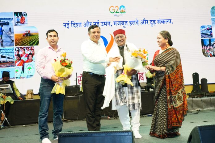 सनातन धर्म इण्टर कालेज, बन्नू रेसकोर्स देहरादून में ‘9 वर्ष उत्कर्ष के’ विकास और संस्कृति का महोत्सव तथा देश के असीम विकास यात्रा कार्यक्रम में आज दिनांक 31 मई 2023 को दूसरे दिन विभिन्न लोक कलाकारों तथा गायकों द्वारा मनमोहक प्रस्तुतियां दी गई। इस अवसर पर मुख्य अतिथि के रूप स्थानीय विधायक उमेश शर्मा काऊ ने कहा कि सरकार की योजनाओं को आम नागरिकों तक पहुंचाने के लिए स्थानीय कलाकारों द्वारा प्रस्तुत कार्यक्रम एक अदभुत प्रयोग है।