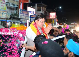 बाजपुर से रुद्रपुर तक गूंजे नारे, पुष्कर सिंह धामी का जोरदार स्वागत