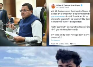 उत्तराखंड का बेटा लापता, मुख्यमंत्री धामी ने परिजनों को थामा