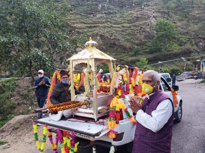 बाबा केदारनाथ भगवान की पंचमुखी डोली आज श्री ओंकारेश्वर मंदिर उखीमठ से सादगीपूर्वक केदारनाथ धाम को प्रस्थान हुई।
