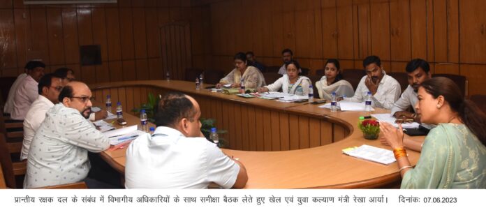 खेल एवं युवा कल्याण मंत्री रेखा आर्या ने विधानसभा स्थित सभागार कक्ष में पीआरडी एक्ट, नियमावली, पीआरडी जवानों से संबंधित पूर्व में हुई बैठकों के बिंदुओं पर अनुपालन, पीआरडी से संबंधित मा0 मुख्यमंत्री घोषणा तथा अन्य महत्वपूर्ण बिंदुओं पर समीक्षा बैठक ली।